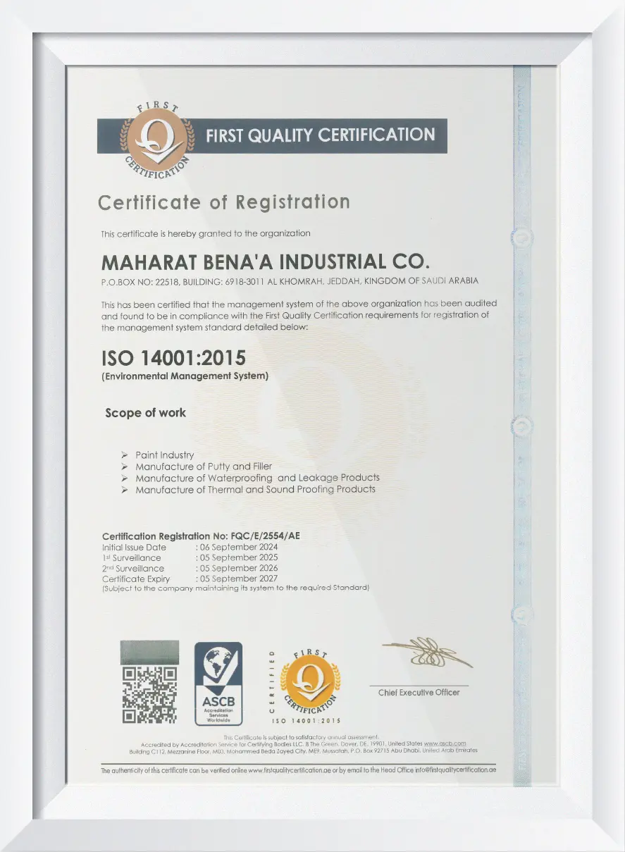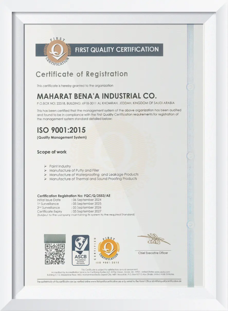 Maharat Bena Industrial was established to meet the urgent need for providing the local and international market with waterproofing materials.